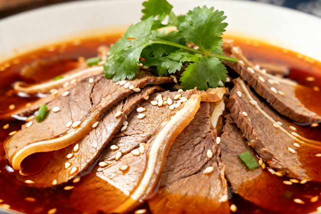 夫妻肺片里的菜并非全部當場制作,而是 提前預(yù)制 + 現(xiàn)場調(diào)配 的結(jié)合模式。核心食材如 牛舌、牛腱、牛百葉 等,需要先經(jīng)過 長時間鹵制入味 ,這個過程耗時長,無法當場完成,通常是提前
